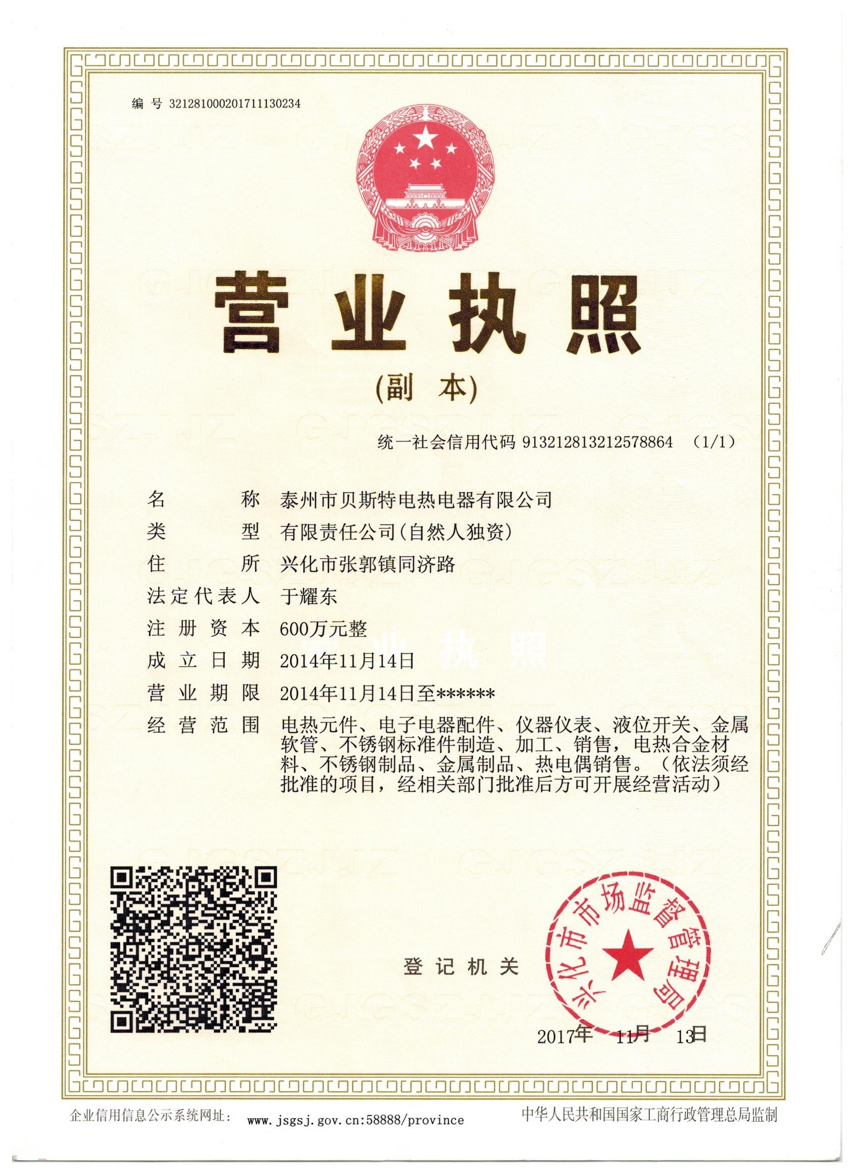 公司名稱(chēng):泰州市貝斯特電熱電器有限公司